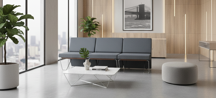 The design approach was to create a modern chair suited for contemporary interiors, while optimizing for modularity, flexibility, customization, and shipping. Mid-century influences inspired the molded plywood forms, while modern considerations drove material selection, and ease of assembly. The stainless steel base provides strength with minimal material, while molded plywood back panels can be exposed or fully upholstered to introduce warmth, texture, and tactile contrast..